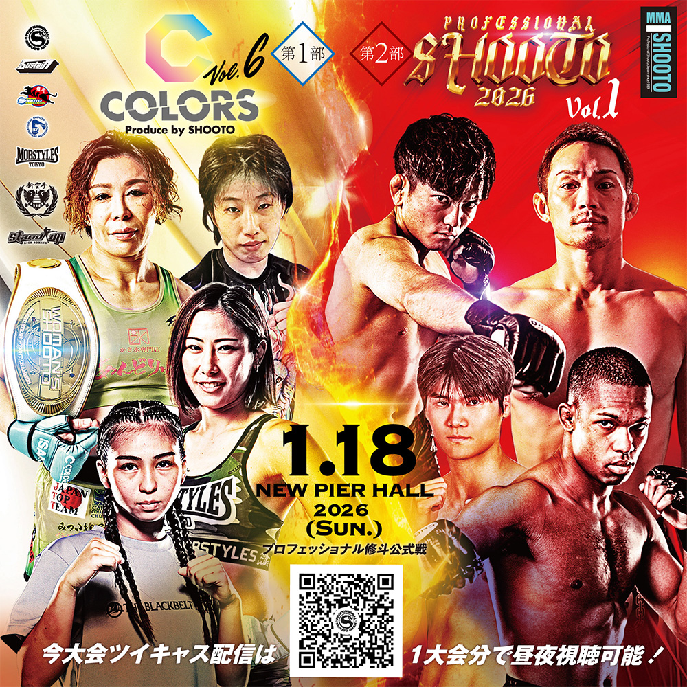 開催を3日後に控えた1.18プロフェッショナル修斗2026開幕戦ニューピアホール昼夜大会。第1部「COLORS Produce by SHOOTO Vol.6」 と第2部の「プロフェッショナル修斗公式戦」の試合順が決定。