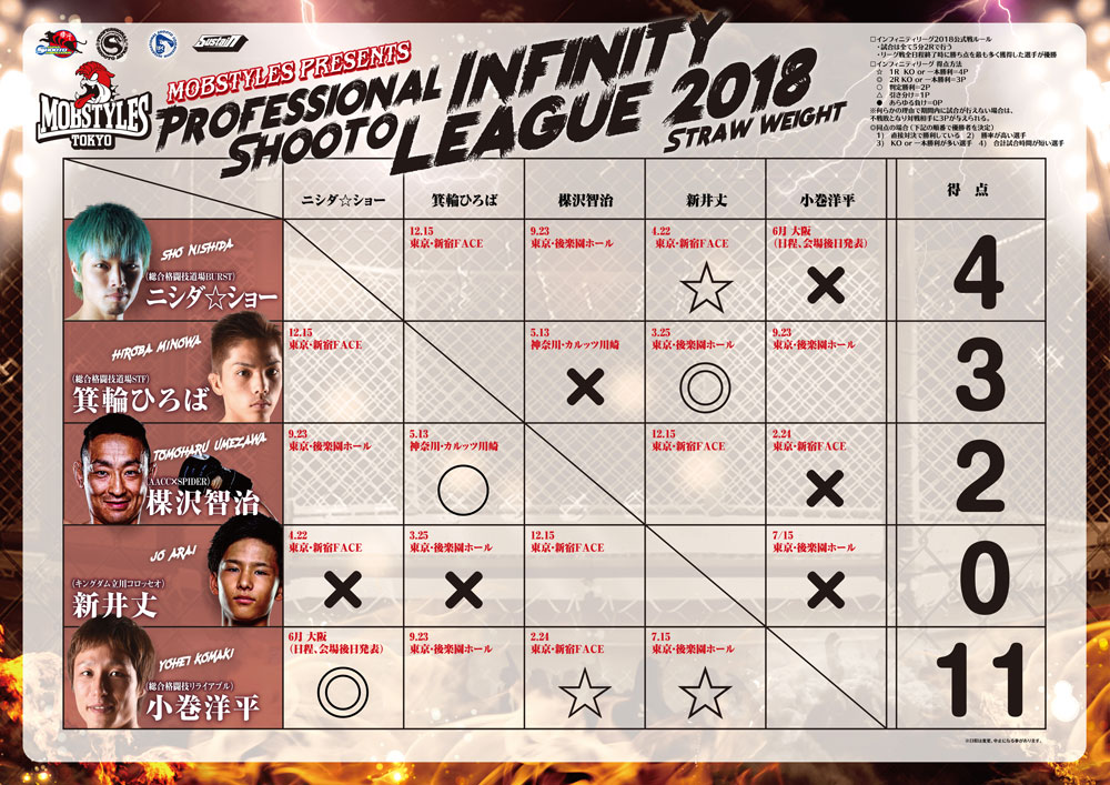 MOBSTYLESpresentsインフィニティリーグ2018優勝の行方は最終戦までもつれる事に! 箕輪の大逆転優勝か、小巻の逃げ切りか・・・・12.15 新宿FACE、優勝決定戦