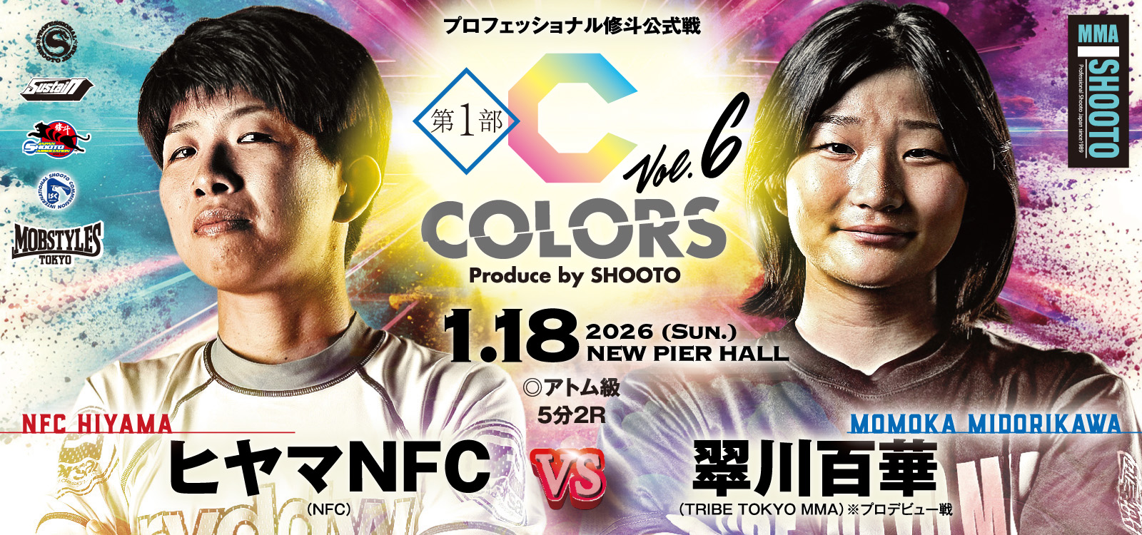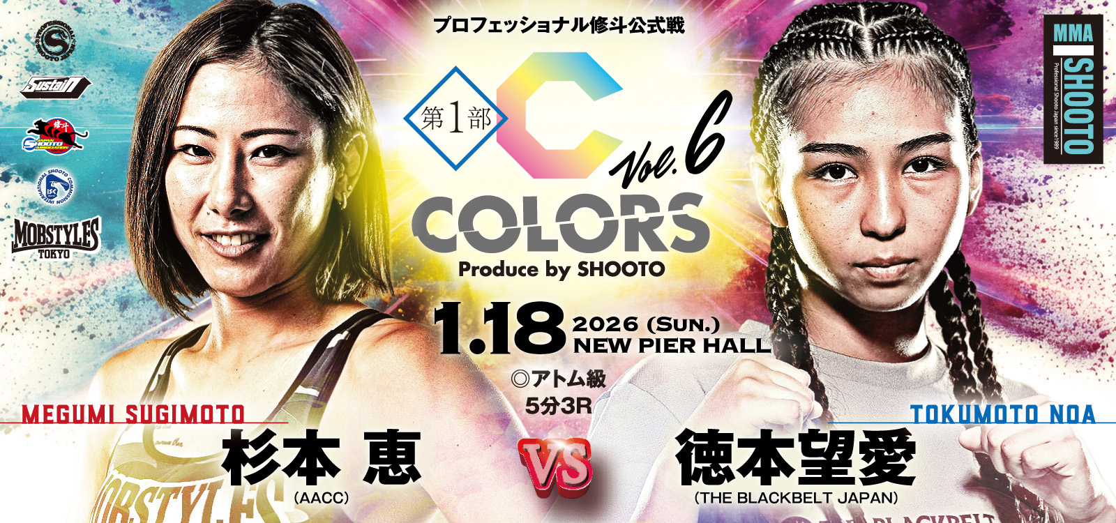 先ず当初12月14日新宿FACEで行う予定だった「COLORS Produce by SHOOTO Vol.6」は2026年の開幕戦となる1.18ニューピアホール大会にスライド開催することが決定致しました。
