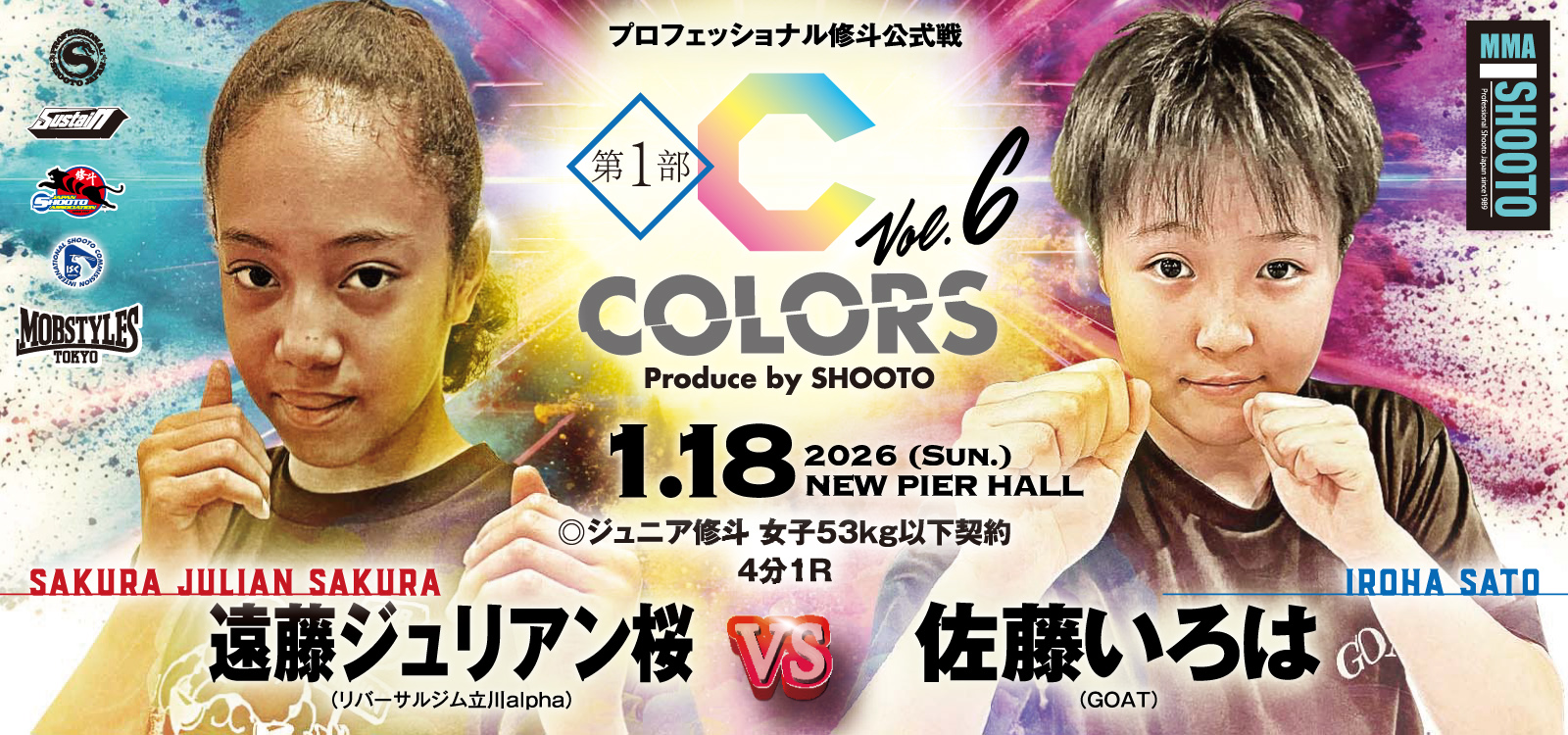 そしてCOLORSでは毎回、未来のジャパニーズMMAを担うキッズ、ジュニアの公式戦を実施。最注目は同大会でインフィニティリーグを戦う高本千代の妹の高本珠緒(高本道場)。柔術では世界の舞台でも輝かしい戦績を誇る高本。対する阿部みこと(CROW FOREST) も14歳ながら10年を超える驚きの格闘キャリアを持っている。その他に3度目の出場となる遠藤ジュリアン桜。アマチュア修斗だけではなく様々なアマチュアMMA大会でキャリアを積む佐藤いろは(GOAT)と対戦。