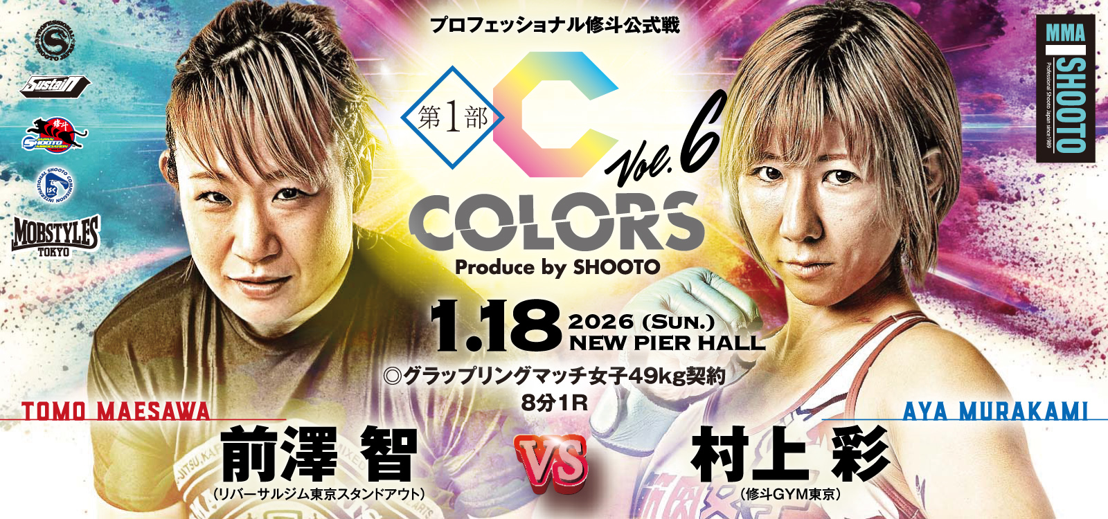 1.18 COLORS ニューピアホール大会決定対戦カード コスプレファイター村上彩が前澤智とグラップリングマッチ!te-aの国際戦!未来のCOLORSファイター集結!ジュニア修斗公式戦など4試合を追加!