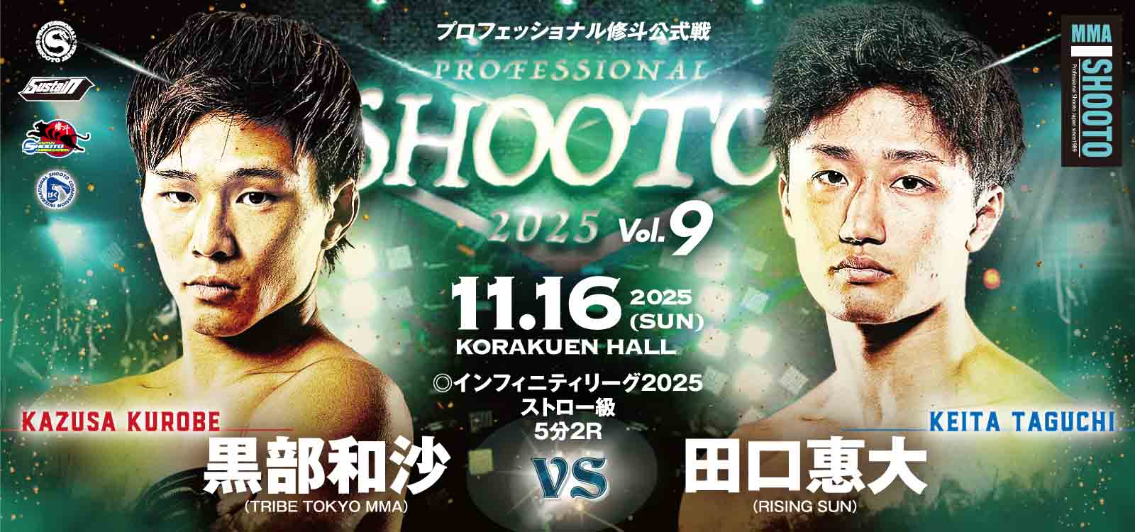 またここから優勝者が篩にかけられてくる「インフィニティリーグ2025ストロー級」の2試合も追加。獲得ポイント9点で単独トップを走る旭那拳。それを追う黒部和沙。今回の試合もいかに早く相手を倒すかが優勝への鍵を握る。リーグ戦もいよいよ佳境に入り、残り試合と獲得点数により優勝者が絞られてくるターニングポイントとなる後半戦にどうぞご期待ください。