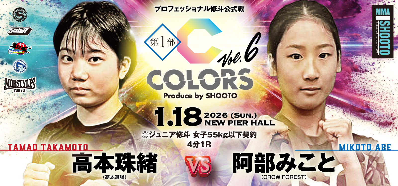 プロフェッショナル修斗2026年の幕開けを告げる1.18ニューピアホール大会。第1部で開催される女子公式戦「COLORS Produce by SHOOTO Vol.6」の追加4カードを発表。