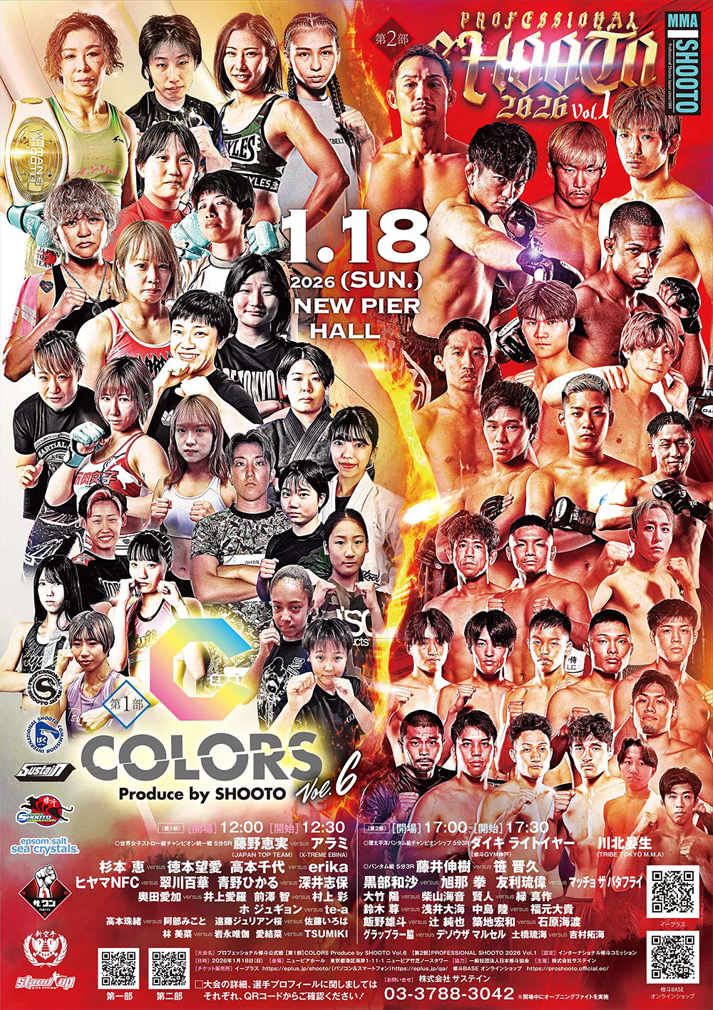 開催を3日後に控えた1.18プロフェッショナル修斗2026開幕戦ニューピアホール昼夜大会。第1部「COLORS Produce by SHOOTO Vol.6」 と第2部の「プロフェッショナル修斗公式戦」の試合順が決定。